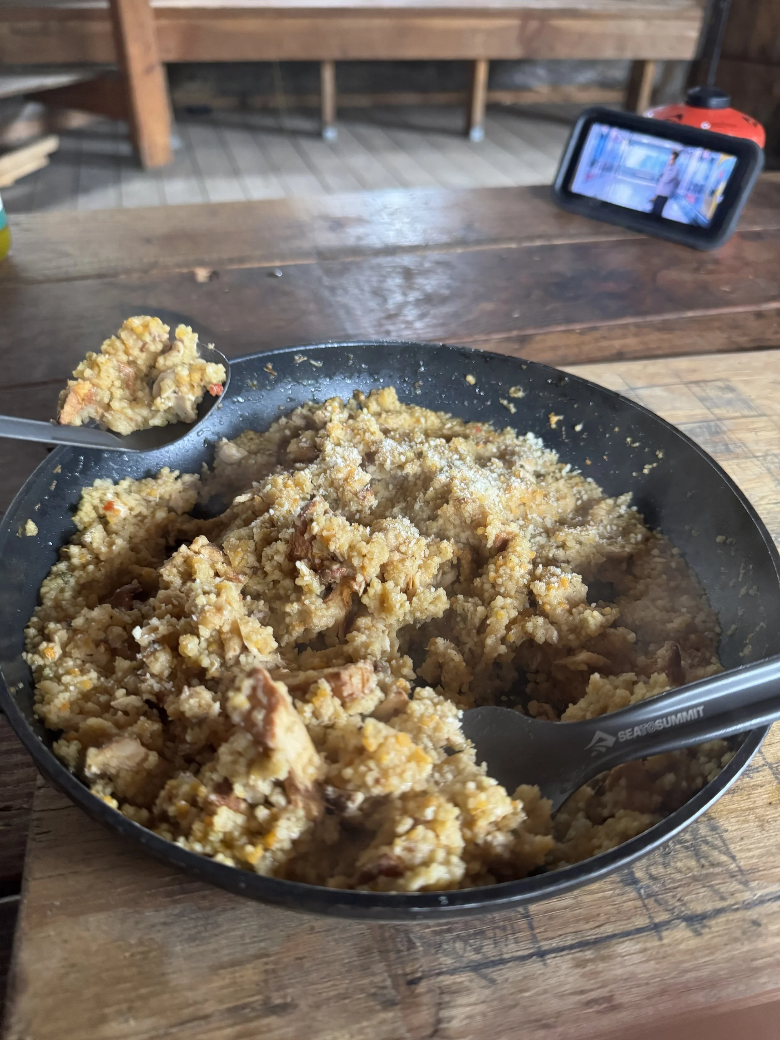 Then just decided to make a meal; I would have to eat lunch anyways, so why not do it in the comfort of a hut?